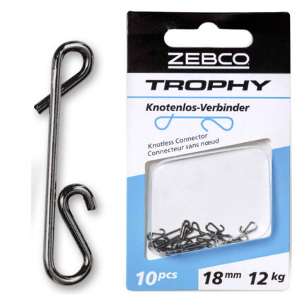 Agrafa Zebco Trophy Knotless Connector este asa cum o descrie denumirea o agrafa pe care o putem utiliza fara a fi necesare nodurile. Mai putine noduri, mai putine sanse de rupturi. Asadar rapiditate in miscari, usurinta si eficacitate. Este la fel de utila pescarilor de rapitor cat si celor de stationar.