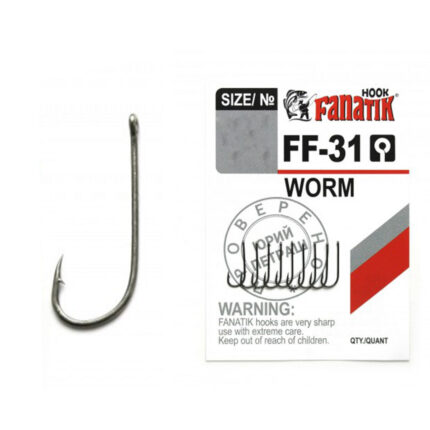 Fanatik FF-31 Worm este un carlig versatil, ce dispune de ochet si este conceput pentru atasarea diferitelor momelil (precum si cele vii: rame, viermusi, etc.), la o gama larga de pesti (biban, salau, ciprinide, etc.). Gratie designului deosebit, ofera un contact special si faciliteaza alunecarea momelii pe carlig. Unghiul, curbura, grosimea si ochetul sunt atent gandite si setate cu o marja de microni, pentru a oferi cel mai bun rezultat in lupta cu pestele. De asemenea, carligele au fost supuse unor lungi perioade de testare, privind duritatea si rezistenta. Carligele sunt fabricate din otel forjat, iar varful ascutit electrochimic le confera o durata de viata indelungata. Disponibil in marimi cuprinse intre 2-14. Culoare Black-Chrome.