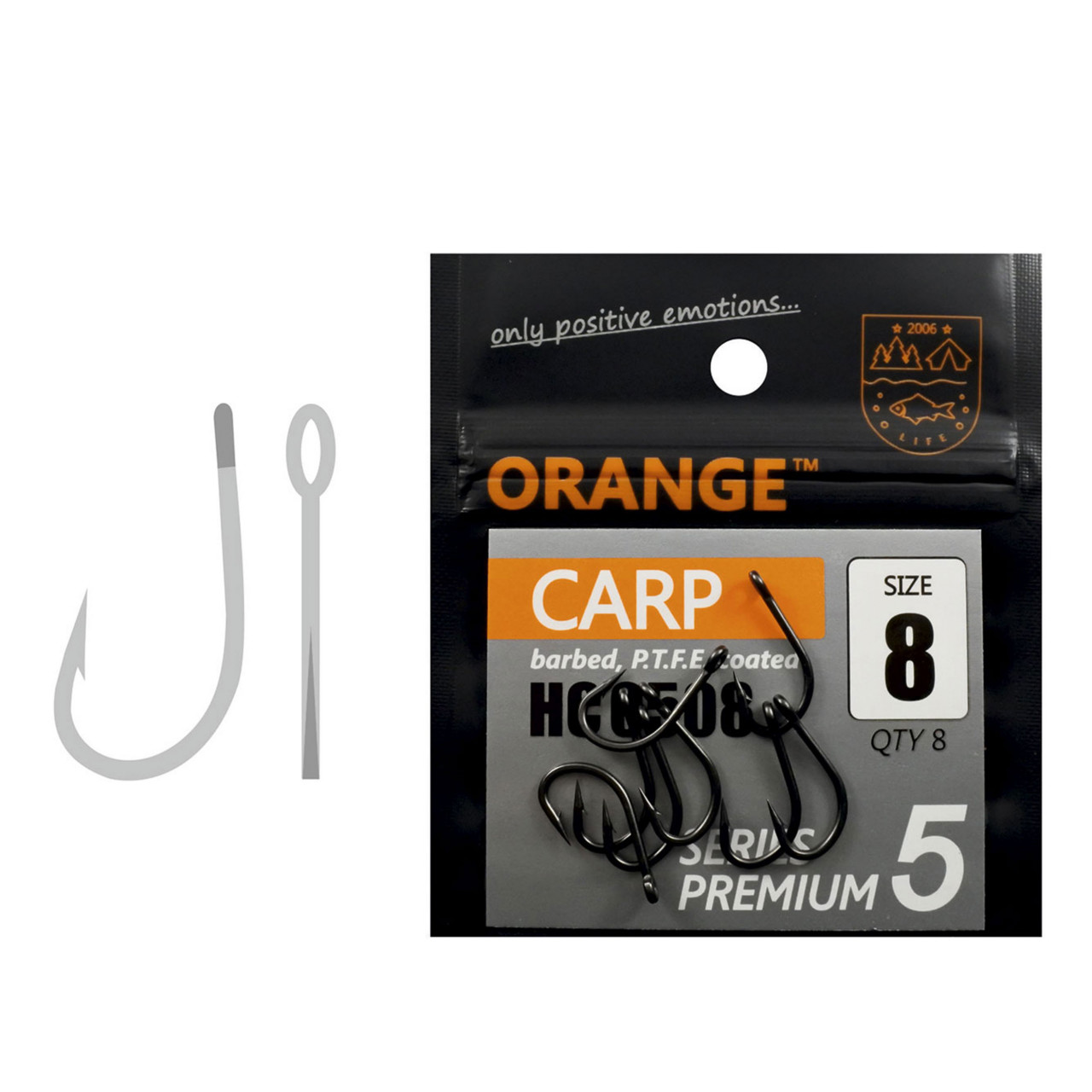 Orange Carp Series 5 sunt carlige cu ochetul drept, tija usor curbata si micro spin. Carligele sunt fabricate din otel forjat si dispun de un strat protector de teflon (PTFE) ce le confera o durata de viata indelungata si au varful foarte ascutit. Ca o particularitate, carligele se remarca prin rezistenta sporita, dusa la extrem, ceea ce le face alegerea ideala pentru un pescuit la pesti mari si puternici pe orice tip de substrat sau in agatatura. Disponibile in 4 marimi: 8, 10, 12, 14.