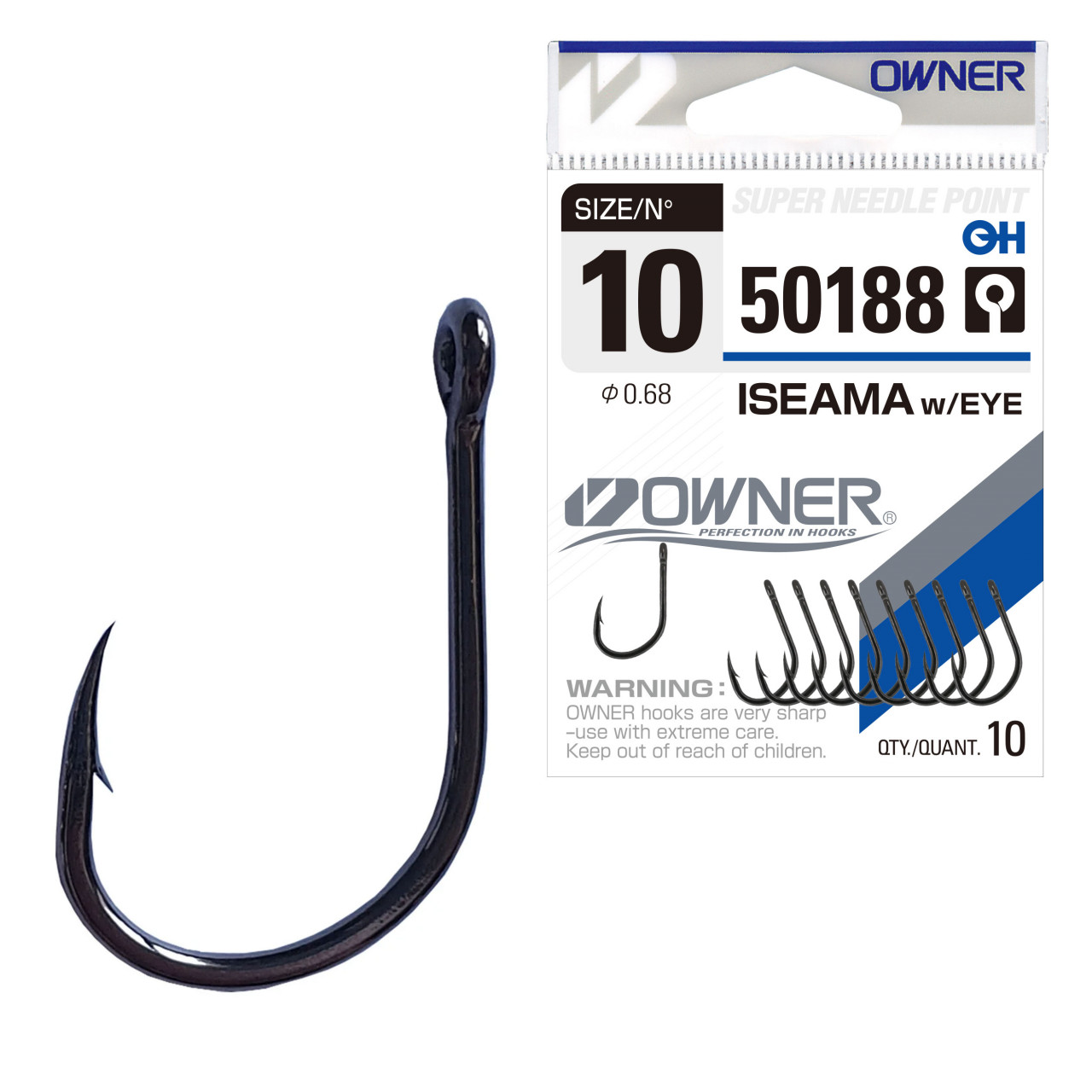 Carligele Owner din gama 50188 Iseama with Eye respecta caracteristicile de baza ISEAMA – ca format sunt relativ apropiate de CHINU, doar ca sunt mai puternice, au tija ceva mai scurta si varful de intepare mai alungit cu contra ceva mai mica. Forma rotunjita, prezenta anoului si culoarea negru crom il recomanda pescarilor de stationar ce folosesc drept momeala pelete, boilies, porumb, mamaliga, etc. Este unul dintre cele mai utilizate carlige de catre crapari.