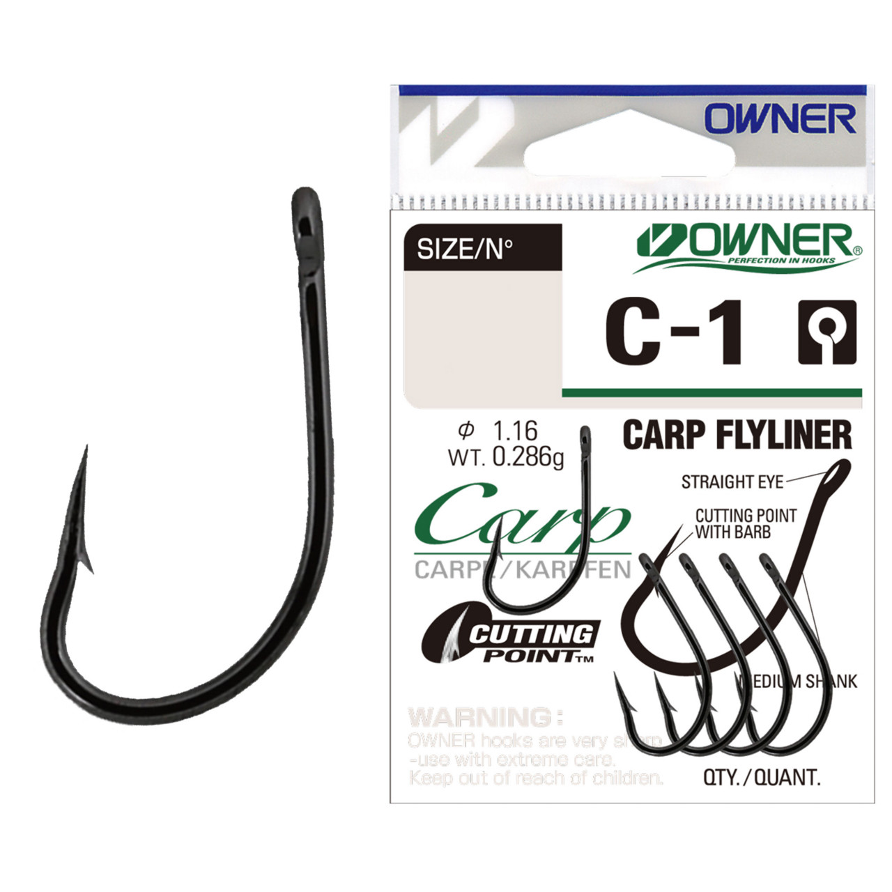 Carligele Owner din gama C-1 CARP LINER fac parte din sortimentul CARP. Majoritatea tehnicilor de pescuit presupun experienta – pescuitul la crap cu atat mai mult. Carligele CARP LINER au in vedere cateva principii – sa intepe foarte bine si eficient crapul, dar sa nu-l raneasca mai ales in momentul eliberarii, sa aibe legatura pe ochet astfel incat sa permita nodul fara nod si fir de par, sa faciliteze monturi cu autoantepare. Asadar, C-1 sunt produse din sarma de otel Hi-CARBON tratata electrochimic, au varf CUTTING POINT si se preteaza foarte bine atat monturilor pe fir textil cat si celor pe fluorocarbon. Tinand cont de forma si dimensiunea tijei, precum si de distanta dintre varf si tija C-1 CARP LINER se preteaza cel mai bine unei monturi de tip Long Carping Rig. Culoarea BLACK CHROME permite o foarte buna mascare pe substrat.