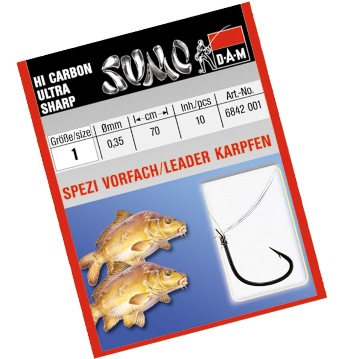 Legendarul producator german DAM a creat sub propriul subrand Sumo o serie completa de carlige legate pentru cele mai populare specii de pesti si stiluri de pescuit, pentru a va usura alegerea din multitudinea de carlige existente , de a alege dimensiunea potrivita a leaderului, dar si pentru va scuti de legarea carligelor inainte de partida de pescuit. Dimensiunea carligelor, forma acestora, se combina perfect cu linia din monofilament Damyl a carui suplete si rezistenta sunt binecunoscute. Fiecare legatura este realizata manual si testata pentru rezistenta iar carligele SUMO sunt din carbon , super-ascutite.
