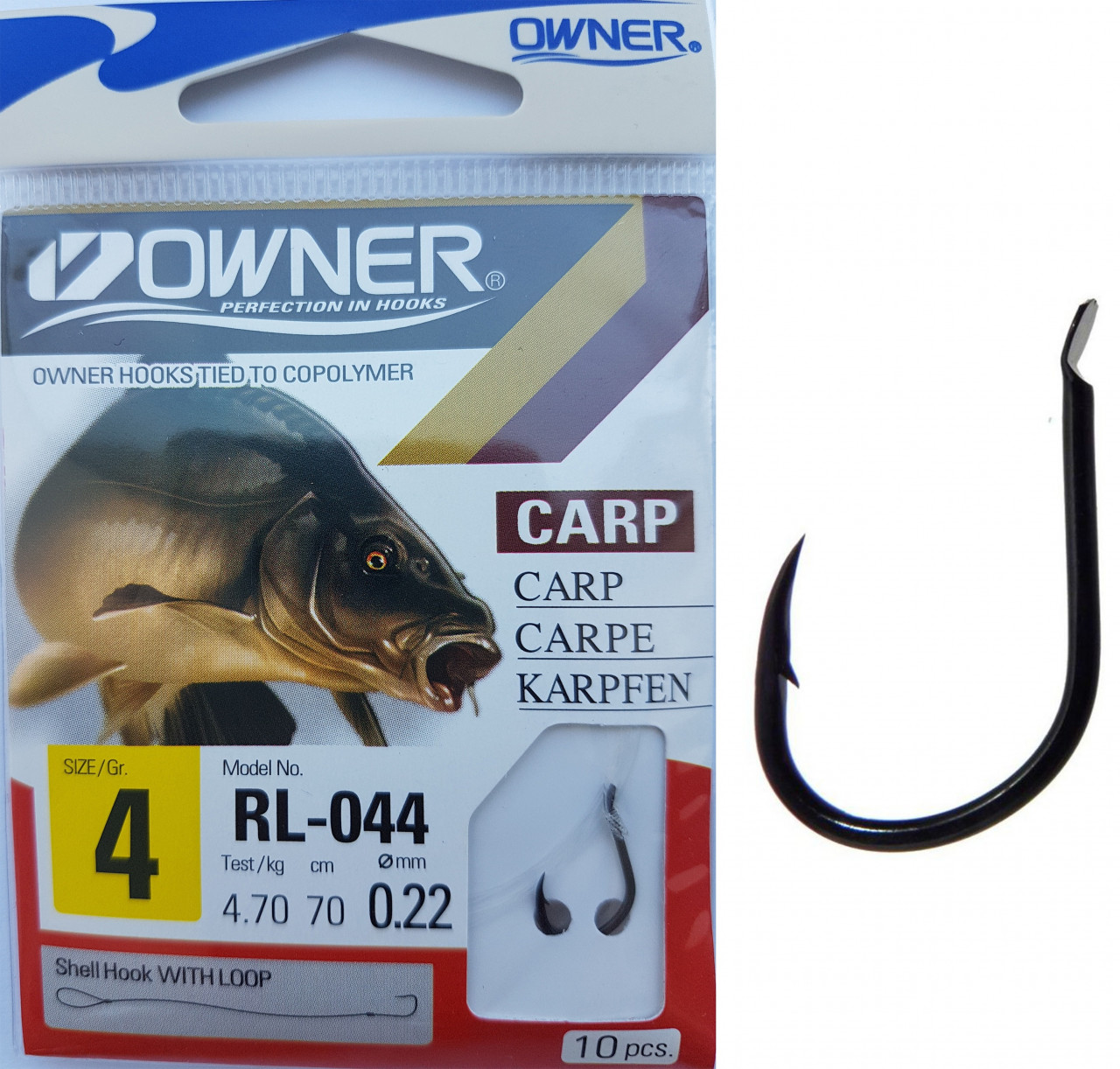 Carligele legate Owner din gama RL-044 sunt produse specializate dedicate pescuitului anumitor specii (vezi poza de pe plic), utilizand tehnici si stiluri dedicate. Au in componenta carlige Owner 50044 ISEAMA-RV (de culoare neagra) si fire monofilament (copolymer) made in Japan. Aceasta gama de carlige legate este utilizata in special de catre pescarii de stationar (feeder, method feeder, match, sheffield, crap, varga, etc.). Se preteaza pescuitului la crap, caras, platica, etc. cu momeli vii (viermi, rame), dar si cu porumb, pelete, mamaliga, etc. In functie de dimensiunea carligului au fost utilizate fire cu dimensiuni de 0.16, 0.18, 0.20 si 0.22mm. Acest produs va scuteste de a mai lega carlige pe malul apei sau in barca, mai ales atunci cand este frig afara, v-ati uitat ochelarii, sau v-au inghetat mainile. Deasemenea va scuteste de achizitionarea, transportul si gestionarea separata a fiecarei componente in parte.