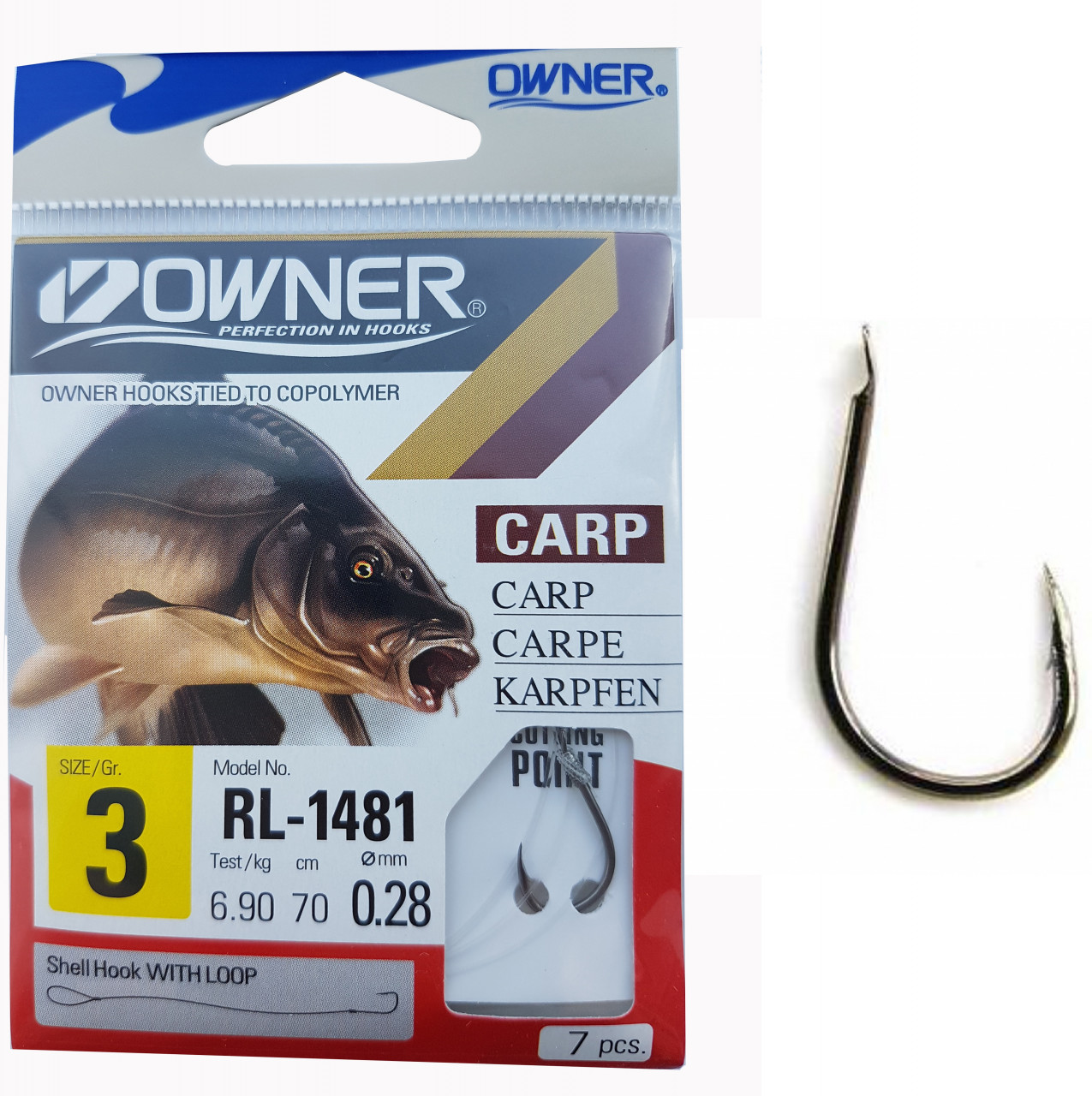 Carligele legate Owner din gama RL-1481 sunt produse specializate dedicate pescuitului anumitor specii (vezi poza de pe plic), utilizand tehnici si stiluri dedicate. Au in componenta carlige Owner 51481 CUT SUPER CHINU (de culoare neagra) si fire monofilament (copolymer) made in Japan. Aceasta gama de carlige legate este utilizata in special de catre pescarii de stationar (feeder, method feeder, match, sheffield, crap, varga, etc.). Se preteaza pescuitului la crap, caras, platica, somn, etc. cu momeli vii (viermi, rame), dar si cu porumb, pelete, mamaliga, etc. In functie de dimensiunea carligului au fost utilizate fire cu dimensiuni de 0.20, 0.22, 0.28 si 0.30mm. Acest produs va scuteste de a mai lega carlige pe malul apei sau in barca, mai ales atunci cand este frig afara, v-ati uitat ochelarii, sau v-au inghetat mainile. Deasemenea va scuteste de achizitionarea, transportul si gestionarea separata a fiecarei componente in parte.