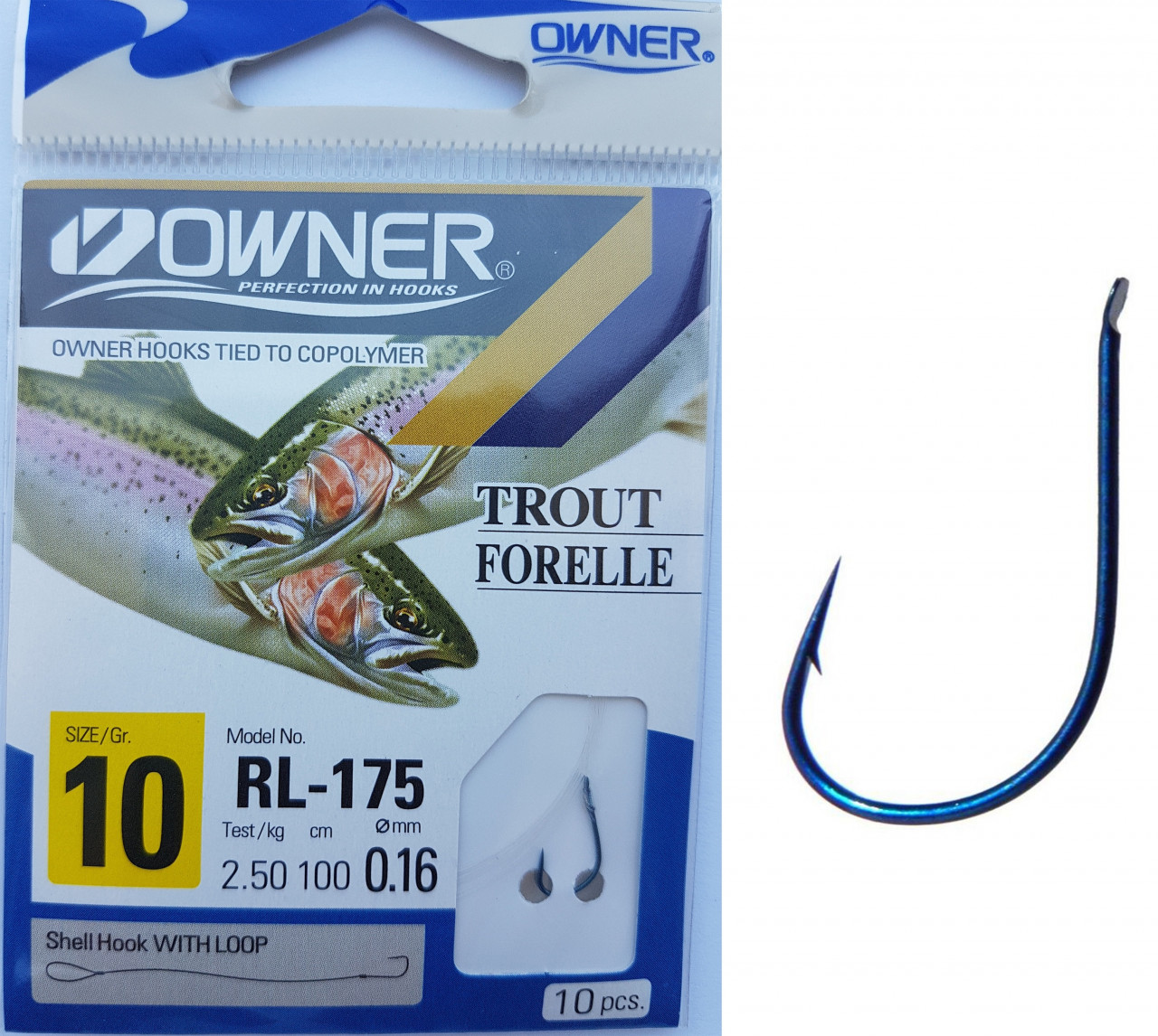 Carligele legate Owner din gama RL-175 sunt produse specializate dedicate pescuitului anumitor specii (vezi poza de pe plic), utilizand tehnici si stiluri dedicate. Au in componenta carlige Owner 50175 KEIRYU (de culoare albastra) si fire monofilament (copolymer) made in Japan. Aceasta gama de carlige legate a fost gandita initial de catre producator pentru pescuitul la pastrav cu momeli vii. Pescarii romani de stationar (feeder, method feeder, match, sheffield, crap, varga, etc.) au adoptat-o si o utilizeaza cu succes la pescuitul la crap, caras, platica, babusca, biban, etc. indeosebi cu momeli vii – viermi, rame, larve, etc. In functie de dimensiunea carligului au fost utilizate fire cu dimensiuni de 0.16, 0.18mm. Acest produs va scuteste de a mai lega carlige pe malul apei sau in barca, mai ales atunci cand este frig afara, v-ati uitat ochelarii, sau v-au inghetat mainile. Deasemenea va scuteste de achizitionarea, transportul si gestionarea separata a fiecarei componente in parte.