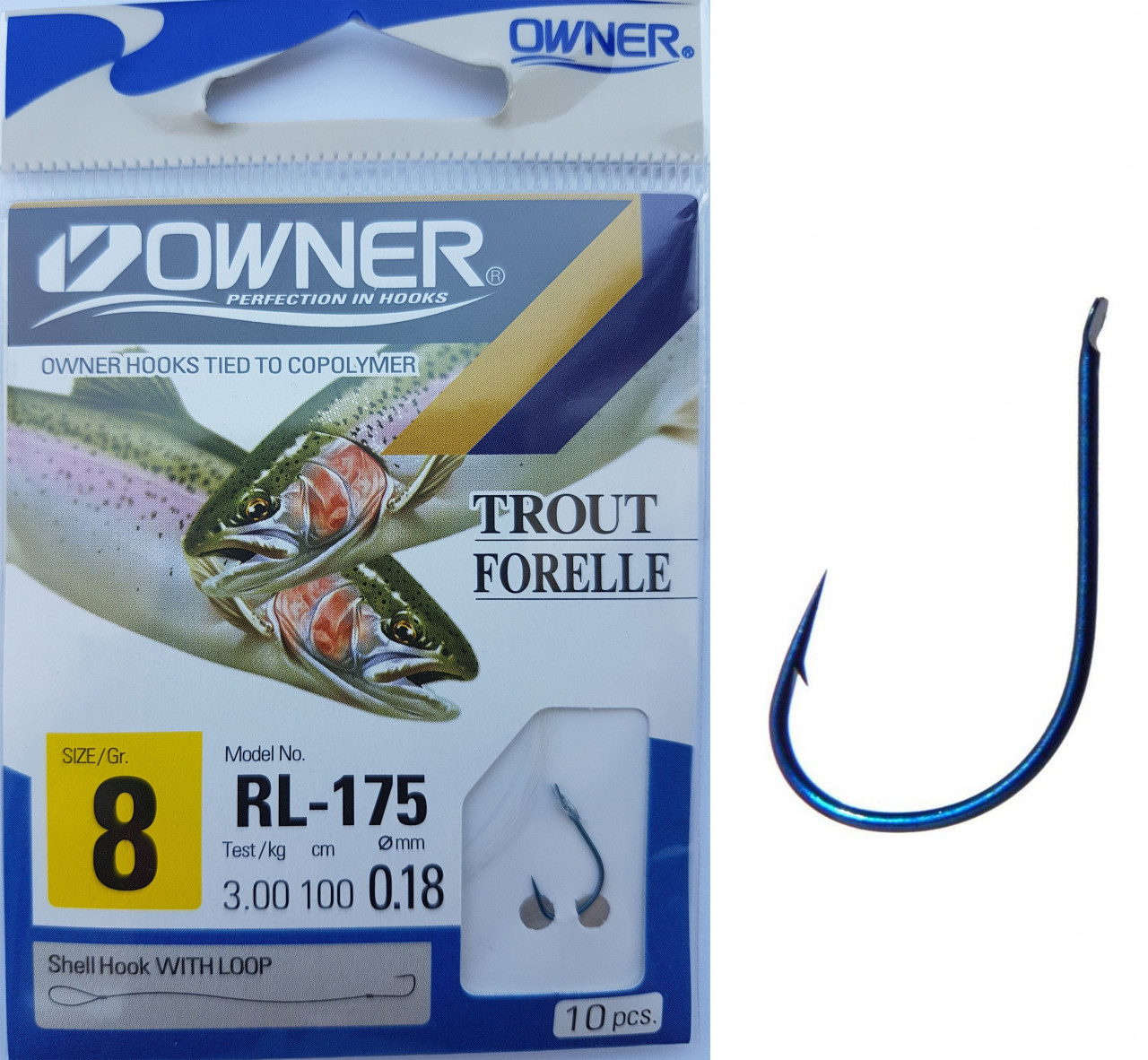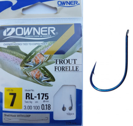 Carligele legate Owner din gama RL-175 sunt produse specializate dedicate pescuitului anumitor specii (vezi poza de pe plic), utilizand tehnici si stiluri dedicate. Au in componenta carlige Owner 50175 KEIRYU (de culoare albastra) si fire monofilament (copolymer) made in Japan. Aceasta gama de carlige legate a fost gandita initial de catre producator pentru pescuitul la pastrav cu momeli vii. Pescarii romani de stationar (feeder, method feeder, match, sheffield, crap, varga, etc.) au adoptat-o si o utilizeaza cu succes la pescuitul la crap, caras, platica, babusca, biban, etc. indeosebi cu momeli vii – viermi, rame, larve, etc. In functie de dimensiunea carligului au fost utilizate fire cu dimensiuni de 0.16, 0.18mm. Acest produs va scuteste de a mai lega carlige pe malul apei sau in barca, mai ales atunci cand este frig afara, v-ati uitat ochelarii, sau v-au inghetat mainile. Deasemenea va scuteste de achizitionarea, transportul si gestionarea separata a fiecarei componente in parte.