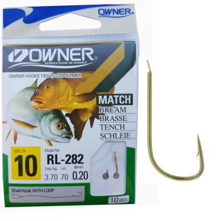 Carligele legate Owner din gama RL-282 sunt produse specializate dedicate pescuitului anumitor specii (vezi poza de pe plic), utilizand tehnici si stiluri dedicate. Au in componenta carlige Owner 50282 SODE (de culoare bronz) si fire monofilament (copolymer) made in Japan. Aceasta gama de carlige legate este utilizata in special de catre pescarii de stationar (feeder, method feeder, match, sheffield, crap, varga, etc.). Se preteaza pescuitului la crap, caras, platica, babusca, etc. cu momeli vii (viermi, rame), dar si cu porumb, pelete, mamaliga, etc. In functie de dimensiunea carligului au fost utilizate fire cu dimensiuni de 0.12, 0.14, 0.18, 0.20 si 0.22mm. Acest produs va scuteste de a mai lega carlige pe malul apei sau in barca, mai ales atunci cand este frig afara, v-ati uitat ochelarii, sau v-au inghetat mainile. Deasemenea va scuteste de achizitionarea, transportul si gestionarea separata a fiecarei componente in parte.