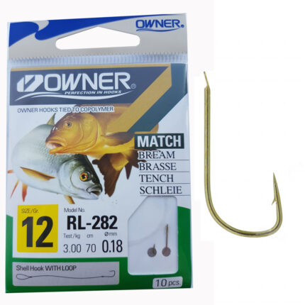 Carligele legate Owner din gama RL-282 sunt produse specializate dedicate pescuitului anumitor specii (vezi poza de pe plic), utilizand tehnici si stiluri dedicate. Au in componenta carlige Owner 50282 SODE (de culoare bronz) si fire monofilament (copolymer) made in Japan. Aceasta gama de carlige legate este utilizata in special de catre pescarii de stationar (feeder, method feeder, match, sheffield, crap, varga, etc.). Se preteaza pescuitului la crap, caras, platica, babusca, etc. cu momeli vii (viermi, rame), dar si cu porumb, pelete, mamaliga, etc. In functie de dimensiunea carligului au fost utilizate fire cu dimensiuni de 0.12, 0.14, 0.18, 0.20 si 0.22mm. Acest produs va scuteste de a mai lega carlige pe malul apei sau in barca, mai ales atunci cand este frig afara, v-ati uitat ochelarii, sau v-au inghetat mainile. Deasemenea va scuteste de achizitionarea, transportul si gestionarea separata a fiecarei componente in parte.
