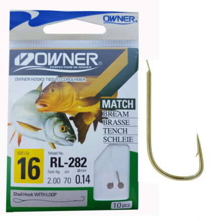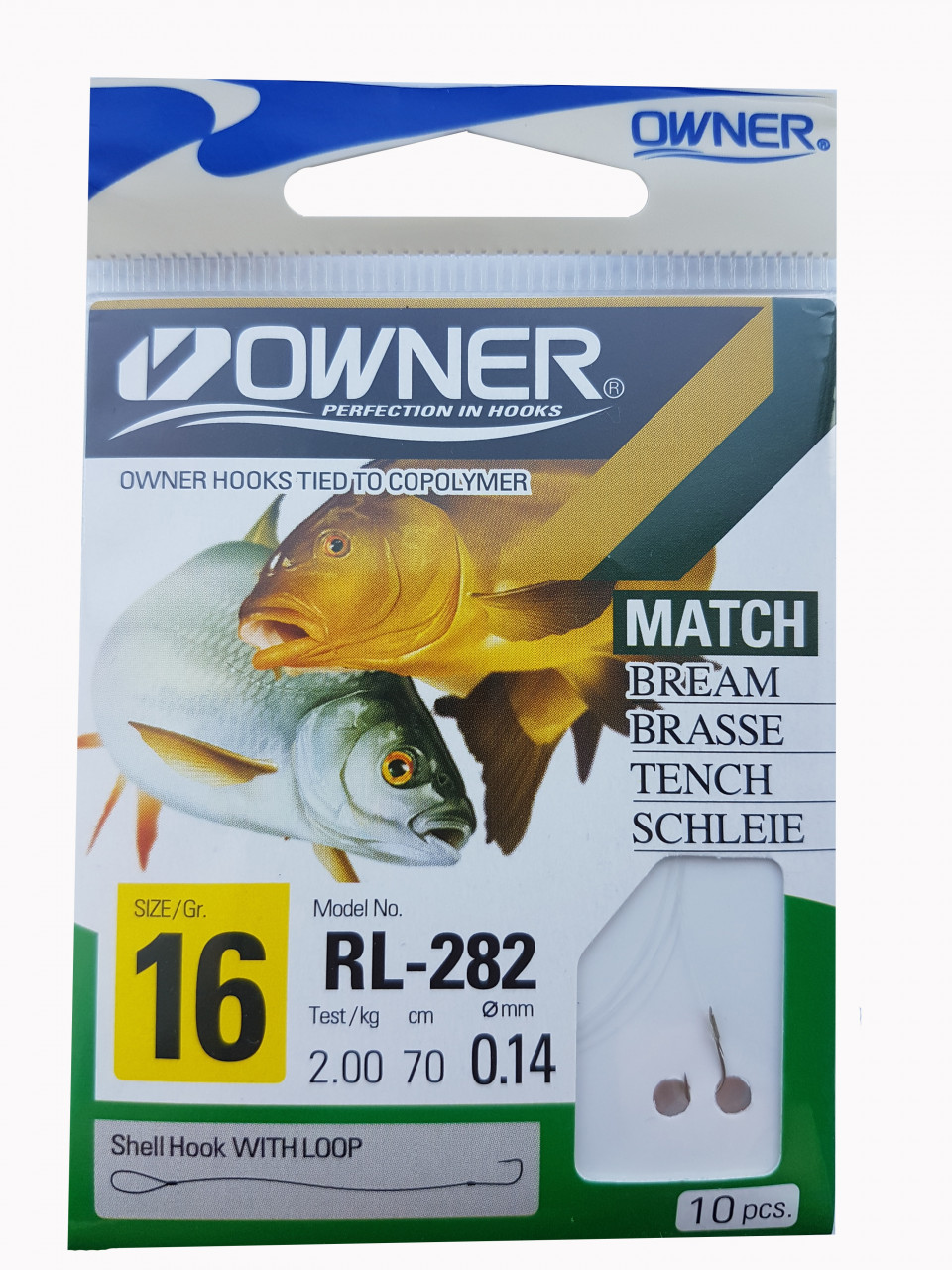 Carligele legate Owner din gama RL-282 sunt produse specializate dedicate pescuitului anumitor specii (vezi poza de pe plic), utilizand tehnici si stiluri dedicate. Au in componenta carlige Owner 50282 SODE (de culoare bronz) si fire monofilament (copolymer) made in Japan. Aceasta gama de carlige legate este utilizata in special de catre pescarii de stationar (feeder, method feeder, match, sheffield, crap, varga, etc.). Se preteaza pescuitului la crap, caras, platica, babusca, etc. cu momeli vii (viermi, rame), dar si cu porumb, pelete, mamaliga, etc. In functie de dimensiunea carligului au fost utilizate fire cu dimensiuni de 0.12, 0.14, 0.18, 0.20 si 0.22mm. Acest produs va scuteste de a mai lega carlige pe malul apei sau in barca, mai ales atunci cand este frig afara, v-ati uitat ochelarii, sau v-au inghetat mainile. Deasemenea va scuteste de achizitionarea, transportul si gestionarea separata a fiecarei componente in parte.