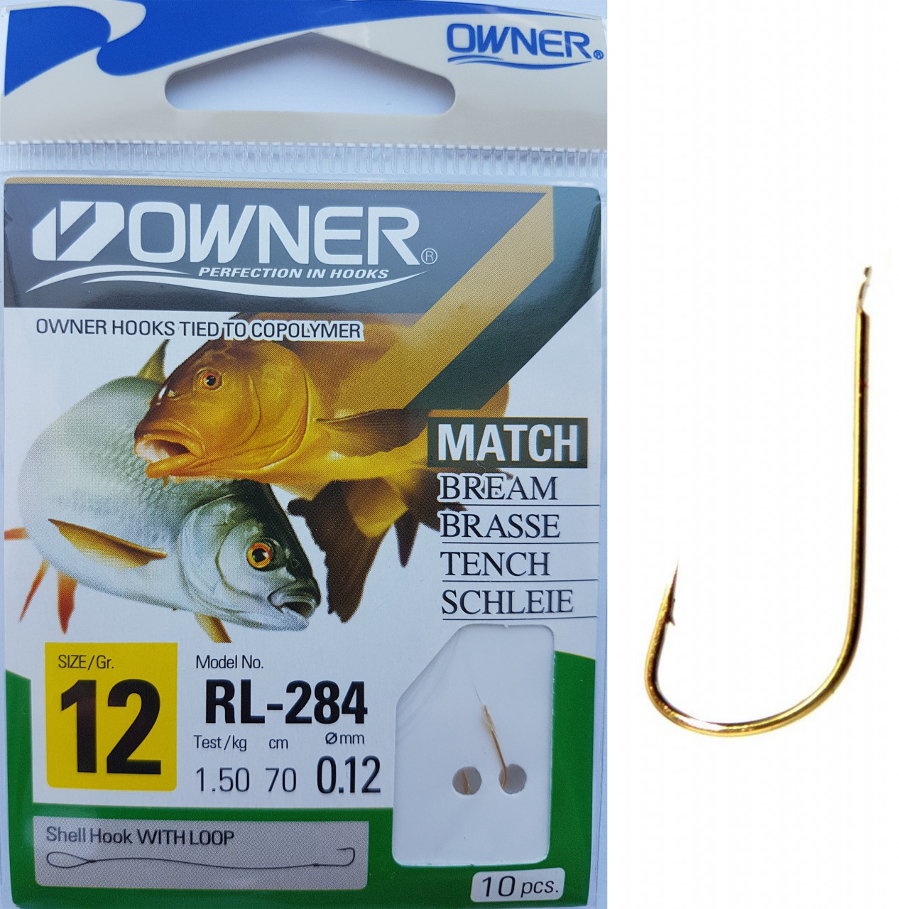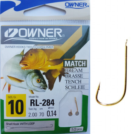 Carligele legate Owner din gama RL-284 sunt produse specializate dedicate pescuitului anumitor specii (vezi poza de pe plic), utilizand tehnici si stiluri dedicate. Au in componenta carlige Owner 50284 SODE (de culoare galben auriu) si fire monofilament (copolymer) made in Japan. Aceasta gama de carlige legate este utilizata in special de catre pescarii de stationar (feeder, method feeder, match, sheffield, crap, varga, etc.). Se preteaza pescuitului la crap, caras, platica, babusca, etc. cu momeli vii (viermi, rame), dar si cu porumb, pelete, mamaliga, etc. In functie de dimensiunea carligului au fost utilizate fire cu dimensiuni de 0.12, 0.14, 0.16, 0.18mm. Acest produs va scuteste de a mai lega carlige pe malul apei sau in barca, mai ales atunci cand este frig afara, v-ati uitat ochelarii, sau v-au inghetat mainile. Deasemenea va scuteste de achizitionarea, transportul si gestionarea separata a fiecarei componente in parte.