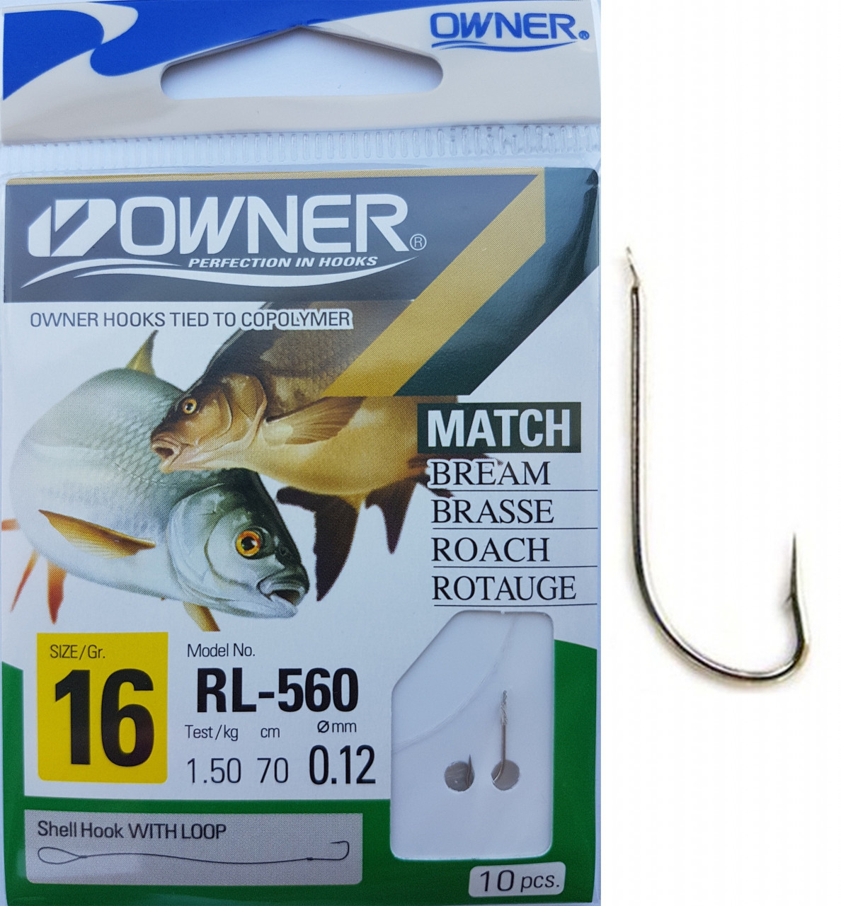 Carligele legate Owner din gama RL-560 sunt produse specializate dedicate pescuitului anumitor specii (vezi poza de pe plic), utilizand tehnici si stiluri dedicate. Au in componenta carlige Owner 50560 FURANSU (de culoare argintiu) si fire monofilament (copolymer) made in Japan. Aceasta gama de carlige legate este utilizata in special de catre pescarii de stationar (feeder, method feeder, match, sheffield, crap, varga, etc.). Se preteaza pescuitului la crap, caras, platica, babusca, etc. cu momeli vii (viermi, rame), dar si cu porumb, pelete, mamaliga, etc. In functie de dimensiunea carligului au fost utilizate fire cu dimensiuni de 0.12 si 0.14mm. Acest produs va scuteste de a mai lega carlige pe malul apei sau in barca, mai ales atunci cand este frig afara, v-ati uitat ochelarii, sau v-au inghetat mainile. Deasemenea va scuteste de achizitionarea, transportul si gestionarea separata a fiecarei componente in parte.