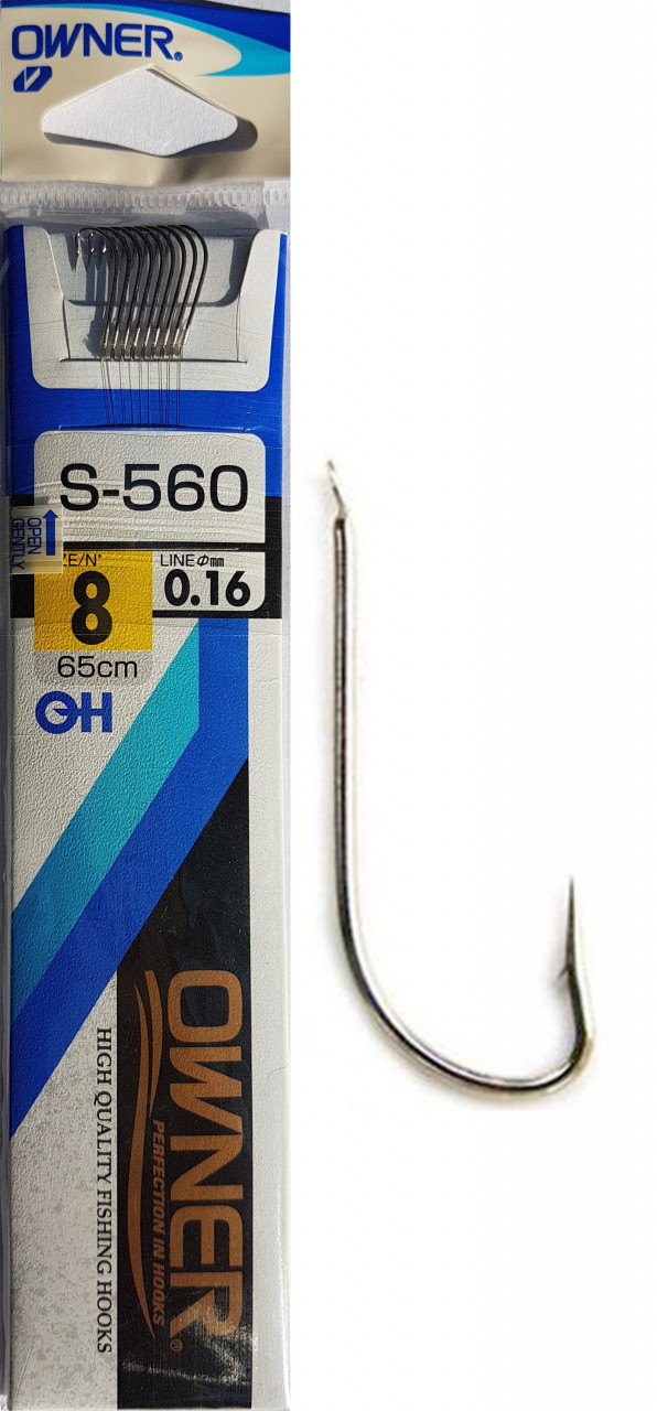 Carligele legate Owner din gama S-560 sunt dezvoltate de compania OWNER pentru piata japoneza. Au in componenta carlige Owner 50560 FURANSU (de culoare ARGINTIU) si fire monofilament (copolymer) made in Japan. Aceasta gama de carlige legate este utilizata in special de catre pescarii de stationar (feeder, method feeder, match, sheffield, crap, varga, etc.). Se preteaza pescuitului la crap, caras, platica, babusca, etc. cu momeli vii (viermi, rame), dar si cu porumb, pelete, mamaliga, etc. In functie de dimensiunea carligului au fost utilizate fire cu dimensiuni de 0.10, 0.12, 0.14 si 0.16mm. Acest produs va scuteste de grija cumparaturilor, transportul si gestionarea separata a fiecarei componente in parte. Totodata atunci cand este frig afara, v-ati uitat ochelarii, sau v-au inghetat mainile veti scapa de grija de a mai lega carlige pe malul apei sau in barca. Si mai ales evitati nedoritul N-AI SA-MI DAI SI MIE UN …