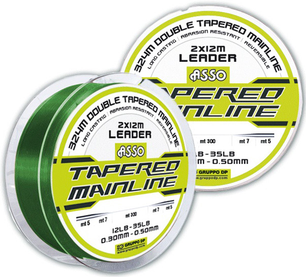 Firul Asso Tapered Mainline Low Vis Green este conceput pentru pescuit in medii dificile cu multa agatatura si obstacole abrasive, adica acolo unde se impune prezenta unui inaintas. Pescarii il folosesc in pescuitul la crap si in pescuitul marin. Rola de fir are in total 324m si este compusa din firul principal de 0.30mm in lungime de 300m si doi inaintasi (cate unul la fiecare capat al rolei) de 0.50mm in lungime de cate 12m fiecare. Trecerea de la principal la inaintas este facuta din fabricatie, NU cu nod. Un avantaj este ca nu mai esti obligat sa pierzi timpul facand noduri intre firul principal si inaintas. Un alt avantaj este acela ca in momentul in care ti s-a rupt inaintasul de la un capat poti intoarce firul pe tamburul mulinetei si il folosesti pe cel de la capatul celalat. Al treilea avantaj este acela ca elimini nodurile de pe firul tau, care oricat de sofisticate ar fi tot ii slabesc acestuia rezistenta.