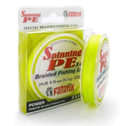 Firul textil Fanatik Spinning PEX4 este un multifilament special conceput pentru a prinde pești prădători cu orice momeală, folosind toate stilurile și tehnicile cunoscute. Firul este strans impletit cu secțiune transversală perfect rotunda, nu se intinde absolut deloc, rezistă cu succes la uzură atunci când pescuiește în locuri „puternice” si nu are tendința de a forma bucle. Fiorul este vopsit în cea mai vizibila dintre culorile disponibile: lămâie fluorescentă. Această colorare vă permite să controlați linia în orice vreme, în orice condiții de lumină. Acest lucru este deosebit de important atunci când prădătorul este la atac la începutul zorilor și al amurgului; noaptea, în lumina felinarului, acest fir este vizibil de la o distanță maximă. Trebuie subliniat faptul că Fanatik Spinning PEX4 funcționează perfect nu numai în anotimpurile calde, ci și la temperaturi scăzute. Textilele maim oi, nu atat de strans impletite , absorb apa si atunci ingheata imediat. Însă Fanatik Spinning PE X4 nu se transformă în mărgele de gheață, nu îngheață pe tamburul mulinetei (ușor tratat cu un spray de silicon, puteți pescui în siguranță și confortabil toată ziua, la temperaturi reci). Și a fost așa de câteva sezoane: durabilitatea acestei împletituri este cu adevărat excelentă.