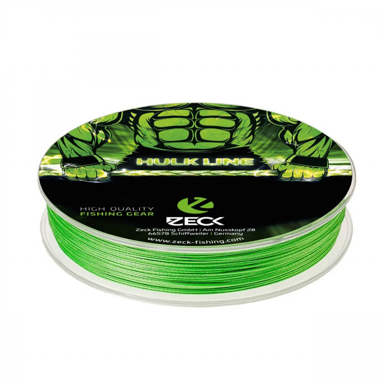 Zeck Hulk Line este un fir multifilament (textil) fabricat de producătorul german Zeck în Japonia, obținut printr-o împletire a fibrelor de ultima generatie, cu un profil rotund si o structura neteda, fiind calibrat exact pe intreaga lungime, avand o rezistență ridicată. Este fabricat din 8 fibre HMPE (high-modulus polyethylene) impletite foarte strans (impiedica scamosarea firului), ceea ce îi conferă o alunecare uniforma prin pastilele inelelor lansetei, contribuind la atingerea unor distante considerabile in lanseuri si o asezare facila pe tamburul mulinetei. Culoarea verde deschis ii confera firului o vizibilitate excelentă pe parcursul partidelor de noapte și nu numai. Zeck Hulk Line are o suprafață foarte netedă, ceea ce minimizează zgomotul sub suprafața apei. Dincolo de multitudinea de factori ce influențează succesul pescarului ajutându-l sa aiba sesiuni reușite de pescuit, cum ar fi locul unde pescuiește, calitatea ansamblului, densitatea peștilor din zonă, dar si priceperea acestuia, firul este unul dintre cei mai importanți factori atunci cand vine vorba de scoaterea la poza a celor mai spectaculoase capturi, cu atat mai mult cand tinta este somnul, de aceea Zeck Hulk Line este firul ce trebuie folosit cu încredere de orice pescar de somn. Un avantaj suplimentar este faptul că practic nu absoarbe apă sau murdărie. Caracteristici: Tip fir: fir textil/multifilament împletit Tehnologie: 8 fibre HMPE (high-modulus polyethylene) Diametru: 0.36mm Capacitate rola: 250m Rezistenta: 23kg Rezistent la abraziune Rezistenta la nod Rezistenta la tracțiune Culoare: verde Fabricat in Japonia