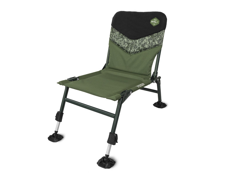Picioarele fotoliului sunt prevăzute cu tălpi robuste şi flexibile care se adaptează fiecărei denivelări a terenului şi în acelaşi timp împiedică scufundarea în terenul noroios. Perechea picioarelor din faţă este reglabilă pe înălţime, ceea ce nu va crea probleme pentru montarea scaunului şi în locuri mici şi denivelate. Picioarele din spate sunt fixate cu ajutorul siguranţelor care asigură, că nici în cazul deplasării picioarele fotoliului nu se vor închide şi nu riscaţi o căzătură neaşteptată.