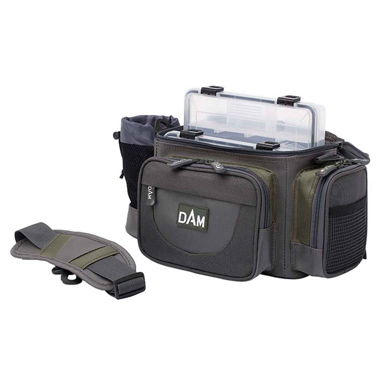 Geanta DAM Hip Shoulder Bag S – M este gandita pentru transportul nalucilor si al accesoriilor. Teoretic a fost gandita pentru partidele scurte de street fishing. Evident se preteaza foarte bine si celorlalte stiluri de pescuit. In compartimentul central se pot transporta 2 cutii fiecare cu dimensiunea de 23x18x5cm. Datorita designului si ergonomiei, este utila atat in timpul partidelor scurte de pescuit la rapitor cat si in timpul partidelor pe termen mediu si lung. Pe langa compartimentul principal, este prevazuta si cu buzunare laterale pentru accesorii.