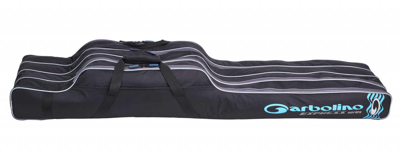 Husa Garbolino Express 3 Compartimente este conceputa pentru transportarea a 3 lansete de feeder echipate cu mulinete. Husa este confectionata din polyester gros si durabil, cu un strat protector impermeabil. Cele 3 compartimente din interiorul husei sunt prevazute cu separatoare captusite pentru o protectie sporita impotriva loviturilor accidentale si umezelii. Dispune de baza intarita PVC in partea de jos pentru protectie impotriva socurilor. Lansetele pot fi fixate in interiorul husei cu ajutorul unor benzi velcro, astfel incat deplasarea si lovirea accidentala a tronsoanelor sunt excluse. Fermoarele duble sunt rezistente la uzura si se inchid ermetic. Cureaua de umar buretata este confectionata din polyester si se poate regla cu usurinta. Manerul de transport cu finisaj EVA asigura o prindere ferma si o priza excelenta in timpul transportului.