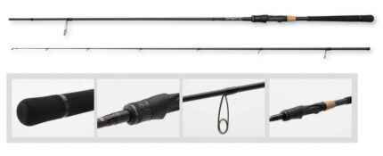 Lansetele DAM Shadow Tele conving nu numai datorita blancului foarte subtire, usor si fast din carbon 24TC precum si a componentelor de inalta calitate, dar si datorita designului modern care rezista in timp. Lansetele Shadow Tele sunt echipate cu inele usoare , cu o singura talpica si rezistente, ceea ce determina o actiune mult mai fast decat la inele conventionale pentru lansete telescopice. Lansetele stau foarte bine in mana, sunt extrem de bine echilibrate, iar interactiunea cu gripul dupa mandrina ( fore-grip) din Camo-EVA combinat cu manerul clasic din pluta face ca aceasta lanseta sa fie extrem de atractiva. Actiunea semi-parabolica ofera fara probleme rezerva de putere suficienta pentru a scoate la mal pesti capitali. Detalii tehnice: Subtire,usoara si puternica , carbon 24TC,Actiune moderata-fast, Componente metal anodizate de culoare neagra, Inele usoare cu un singur picior, Maner pluta comprimata, Fore-grip din Camo-EVA. Caracteristici: material black Carbon TC24, actiune Fast M,mandrina clasica, inele usoare de tip Y, putere de aruncare 25-40gr, numar inele 4+1, inel de plecare 26mm, inel varf 10mm