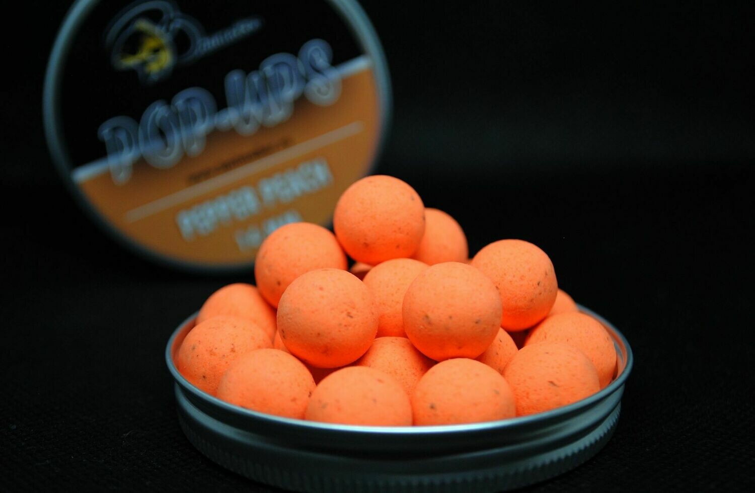Pepper Peach pleaca de la o combinatie clasica “piper si piersica” fiind o momeala veritabila de mare atractie. Avand in componenta palatanti de gust si miros ,aminoacizi si un pachet aromatic eficace , acest pop-up s-a dovedit a fi cel mai potrivit atunci cand vrem sa obtinem trasaturi rapide in pescuitul de viteza .