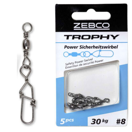 Vartej Agrafa Zebco Trophy Safety Power Swivel face parte din categoria produselor extrem de versatile ce acopera mai toate stilurile de pescuit – spinning, street fishing, feeder, stationar, crap, barca, dunare, surfcasting. Fiabilitatea si calitatea au fost indelung testate si certificate de catre pescari. Tine doar de abilitatea fiecaruia dintre noi sa folosim dimensiunea adecvata stilului si speciei tinta – stiuca, salau, biban, avat, pastrav, bass, clean, vaduvita, crap, amur, novac, sanger, buffalo, scoicar, caras, lin, babusca, rosioara, platica, scobar, mreana, guvide, somn, calcan, chefal, stavrid.