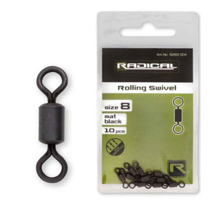 Vartejul Radical Big Eye Swivel este extrem de rezistent si util in mediile abrazive. Este special proiectat pentru pescarii pretentiosi. Acesta este realizat dintr-un otel inoxidabil, tratat impotriva apei sarate si mediilor abrazive. Este o conexiune nestandard cu ochetii asimetrici pentru atasarea inaintasului sau a greutatilor de lestare. Unii pescari il folosesc pentru monturi helicopter. Finisajul negru mat, fara reflexie, camufleaza excelent vartejurile pe substratul oricarui lac sau apa curgatoare.